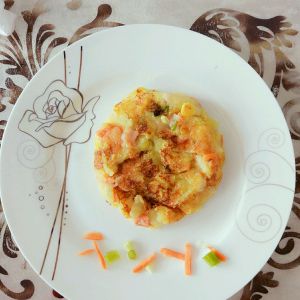 中火慢煎,直至两面金黄,即可出锅。酥脆美味,美美的土豆泥饼就可以享用啦。