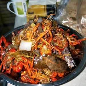 放热油 炒所有调料 炒香后倒入小龙虾 翻炒均匀