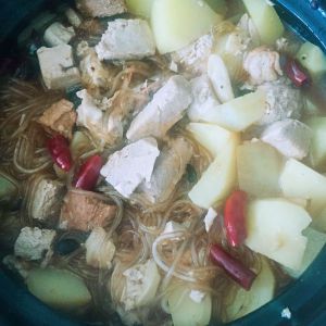 最后砂锅土豆冻豆腐猪肉炖粉条就做好了。