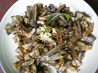 小火慢慢的煸炒 出锅前放辣椒粉 适量