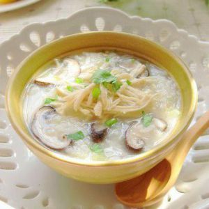 大米淘洗干净,放入煮鸡肉的汤锅里。