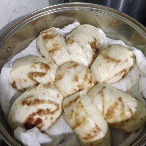 将发酵好的面团,撒上面粉,加入苏打粉,揉光滑,切成一块一块的,锅中加水,烧成温水,关火,把切好的馒头放入锅中,再次发酵20分钟