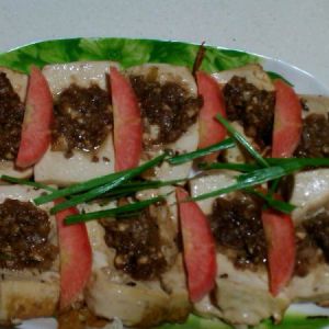 豆腐捞出,剩下的水加入淀粉煮粘稠,浇在豆腐上即可。弄点装饰,如张亮说的,生活有点追求嘛~~*^O^*