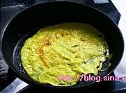 虾仁切大块加入一点盐和料酒腌5分钟,鸡蛋打散摊成鸡蛋饼,切丝备用。