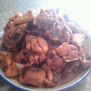 油热后下蒜片炒香(喜辣可加辣椒),倒入鸡肉翻炒至稍微变色加入酱油(依个人口味),继续翻炒几下,倒入可乐,没过鸡肉(不到半瓶的量)