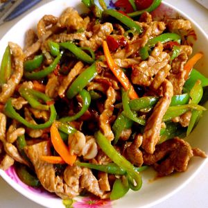 加入切好的胡萝卜丝,青椒丝翻炒3分钟