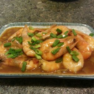 锅内放油,油热后放入腌好的虾炒制,轻按虾头炒出红油后,把虾盛出。用锅内虾油,放入葱段和姜末炒香,把调好的汁倒入,再将虾倒入锅内,盖锅盖小火焖2分钟后,转大火收汁,收好汁盛出装盘,将葱绿洒上即可。