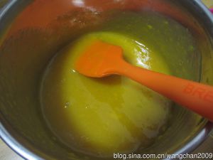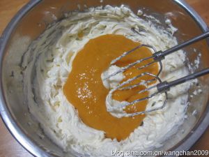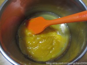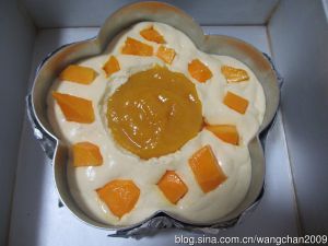 加入芒果果酱拌匀.加入1里的牛奶吉利丁液