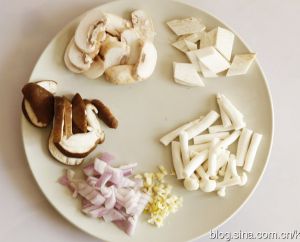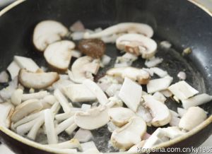 各式蘑菇改刀切小,洋葱蒜头切粒。