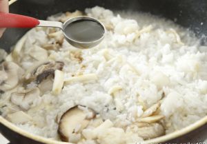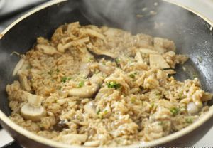 焖至米饭的水份基本收干,关火即可。最后可按个人喜好撒入葱花。