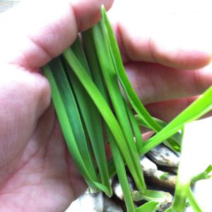 两棵小蒜苗洗净切小段。这蒜苗是我自己用杯子生在阳台上的,给宝宝做饭揪两棵,还是怪方便的,这都长了四五茬了