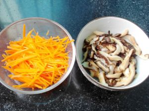 胡萝卜去皮切丝;浸泡后的香菇洗净切丝;