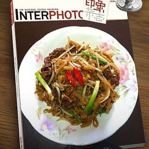 再起锅大火烧热,大火炒河粉,加放步骤3,再放豆芽和葱段,保持大火兜炒,胜盘