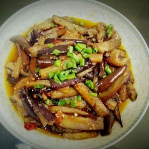 3.将油烧热,把茄子放进去炸2-3分钟捞出,再用小火把油烧热,将葱姜蒜爆炒香加入豆瓣,再将茄子倒入翻炒3-4分钟,加入盐,醋,糖(有冰糖最好,可以提色),最后勾芡起锅!!