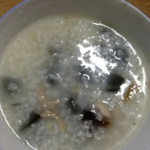 将葱末、姜末、炒熟的肉丝倒入米粥中,加入少许盐,开锅后倒入松花蛋丁