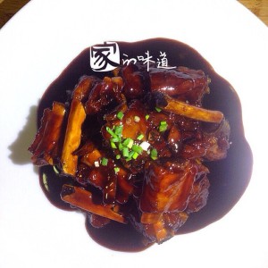 3:倒入黄酒老抽。大火烧开后盖好盖子改用小火。10分钟后倒入准备好的醋和冰糖。大火烧开小火闷半小时后。加入少许盐。勾芡。翻炒。最后撒入少许葱花。