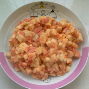 西红柿粒火腿粒炒馒头粒