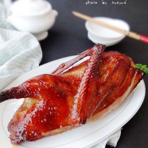 风干后在鹅的上下刷上蜜汁(用麦芽糖和温水调成)。