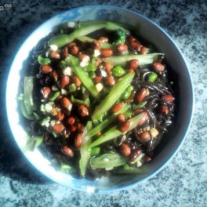 然后就是搅拌了,要彻底搅拌均匀哦。然后放进花生米,搅拌几下装盘。 OK,搞定!