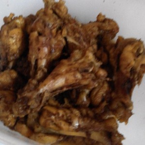 拿出翅根,翻个,继续微波2分钟。这时加入一点生抽,自己看着加,主要是上色,还有会有咸味。。