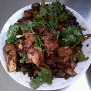 锅里倒油烧热,放入葱姜蒜花椒大料炒香,在倒入鸡块翻炒几分钟,倒老抽上色,生抽放盐