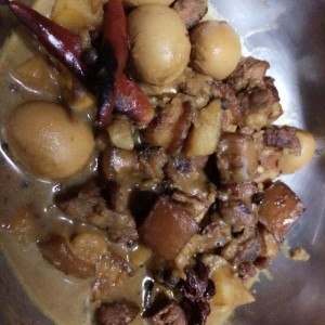 热锅中倒入油,放入糖融化至焦黄色放入五花肉(小心嘣油),倒入料酒加入花椒、辣椒、月桂叶、八角、葱姜等炒一会儿。加水莫过五花肉,放入鹌鹑蛋。加适量酱油和盐大火烧开转小火30分钟,放土豆在烧10分钟