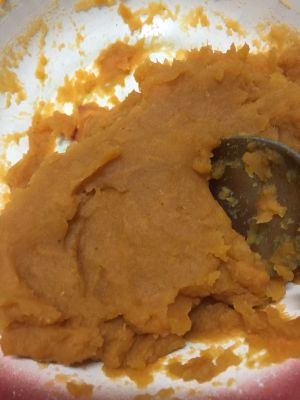 熟了,➕炼奶或者蜂蜜,捣碎拌匀备用