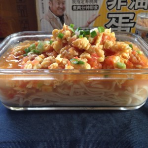 锅内放水烧开,放入面条,5/7分钟后面条漂浮于水上,盛入碗内,加少许盐,香油,加点汤,然后把之前炒好的西红柿倒在面条上,撒上葱花即可。