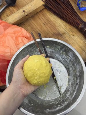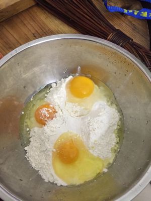 加鸡蛋(我这次鸡蛋加多了TT但是后来实在粘手 又加了许多面粉)
