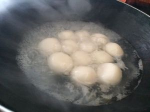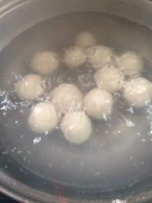 锅内加水烧开,下糯米团。煮至完全浮起,捞出冷水浸泡。