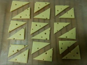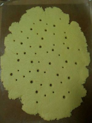 用擀面杖擀成薄片,然后用粗细不同的吸管扎出洞洞。