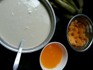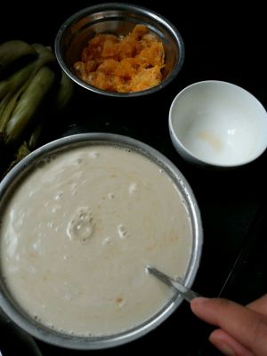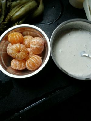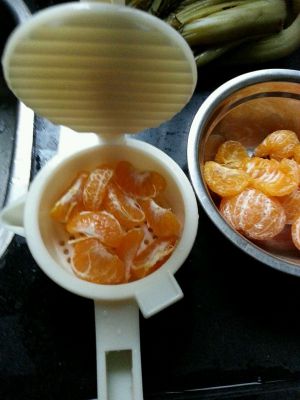 这个就是冲好的马蹄粉还有剥好的橘子啦,我用了8个,榨完只有一碗水。。