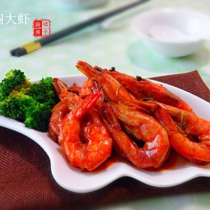 净锅上火,放入植物油烧热,下入大虾翻炒变红。