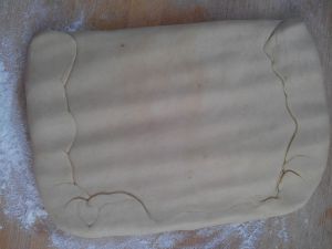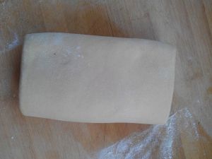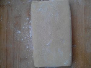 把黄油包严实,用用擀面杖轻轻敲打面团。