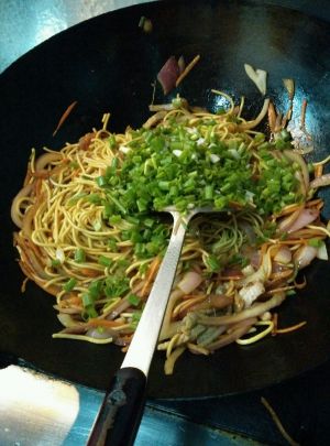 等葱花变的软点后,就可以出锅了,因为葱花已经完全香到面上了