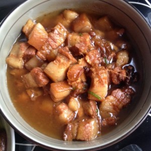 五花肉洗净切自己想要的快,一般为1.5厘米方块,冷水锅一起煮一下,锅开,捞出洗净