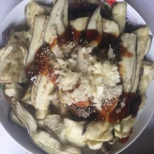 蒸锅里的茄子偏软之后,夹到盘子里,放上蚝油,盐,醋,鸡精,香油,大蒜,喜欢吃辣椒的,可以放辣椒油,芝麻等等佐料。可根据自己的口味来加减。最后搅拌均匀,就可以开动了哦。
