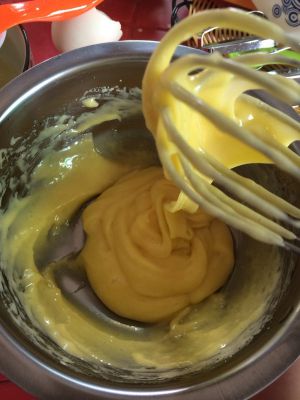 糖粉跟蛋黄打发至蓬松