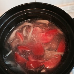 排骨烂熟,放入番茄和盐,煮开即可