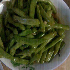 把四季豆炒出显干的状态,像皱纹一样的形状后,加入大蒜,鸡精等调味