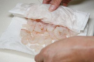 将虾仁洗净,用赠送您的专用纸巾吸干水分。