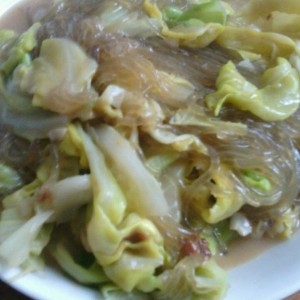 倒入芝麻酱,然后倒入粉条。如果你没用芝麻酱,可以加些热水。不然粉丝不好入味