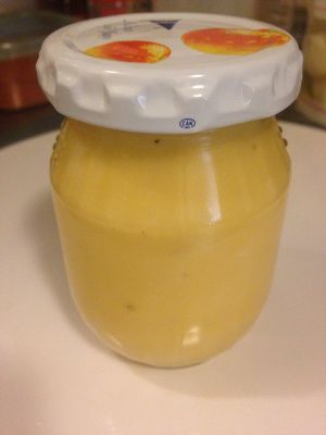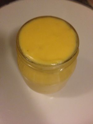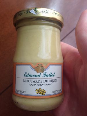 这个就是芥末酱,准备材料。在碗里放蛋黄,芥末酱,一小勺米醋(醋尽量少放)然后搅拌