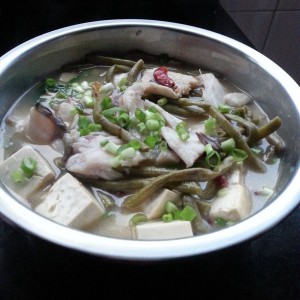 . 倒入没有腌制的鱼排和泡菜,翻炒到可以闻到泡菜的香味【家里只有腌制好的豇豆角,所以就用它了,味道一样的鲜美!】