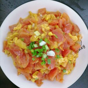 锅中留少许底油,放入蒜末爆香下入西红柿,翻炒半分钟后,加入一勺白糖和适量食盐,继续翻炒至出砂汤,加入鸡蛋,翻炒均匀,撒入一半香葱花出锅。