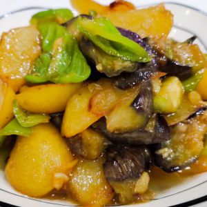 把土豆和茄子倒进去炒均匀。