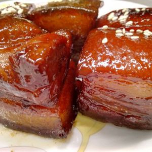 一共十块儿肉。两个人有节制滴饕餮了一半,还剩五块儿!红烧肉必须大块做,看起来才有份量,才配的上毛氏二字!