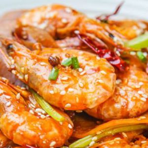 再把虾放进去,加入2大勺生抽、1大勺料酒、1大勺陈醋、2小勺白糖翻炒均匀。