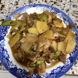 肉可以是五花肉,也可以是腹部肉。还有土豆没拍上