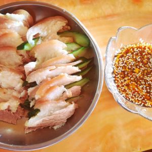 4.肉切片夹一片青瓜,沾上料汁,开吃